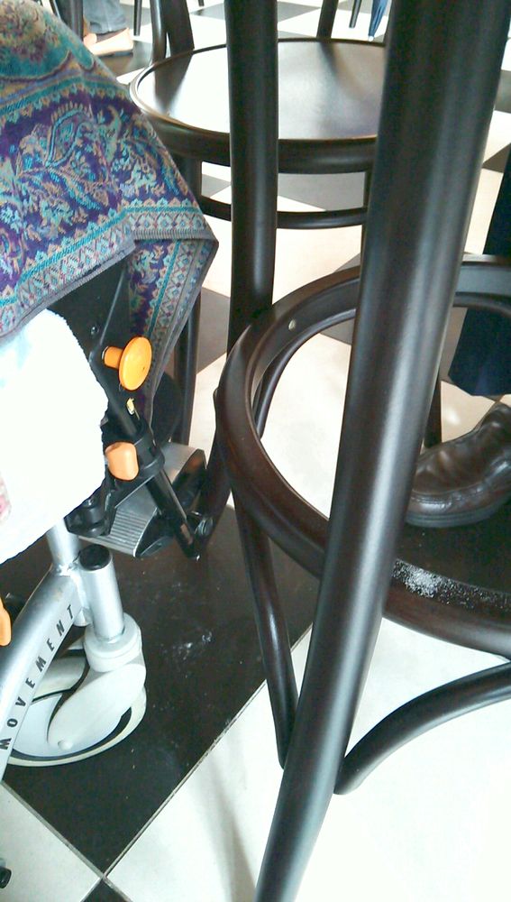 車椅子は、店には入れたけど、テーブルには入れなかった。