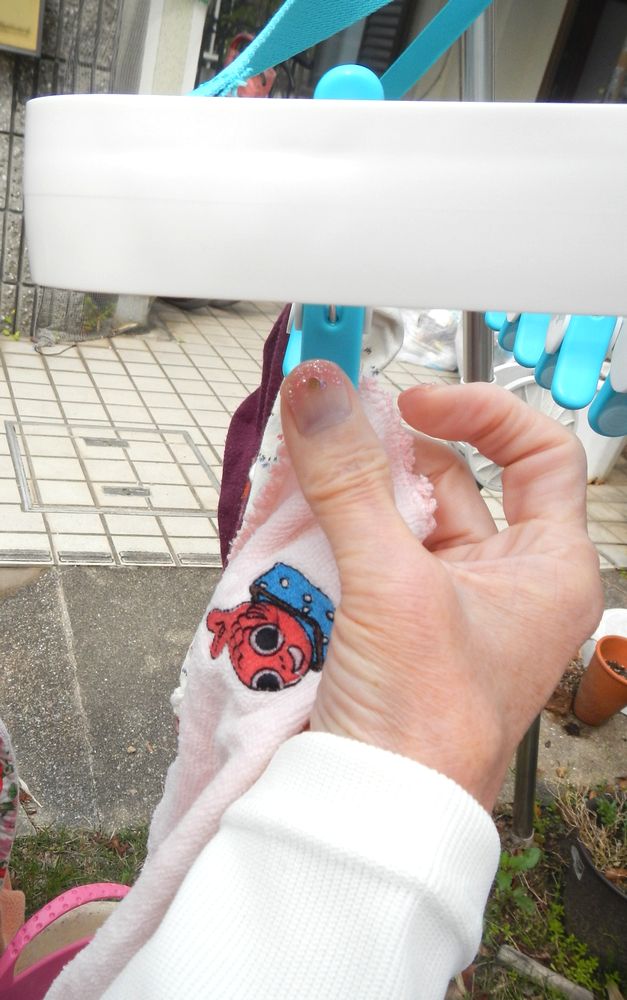 靴下やミニタオルなら母ひとりで干せるようになった。