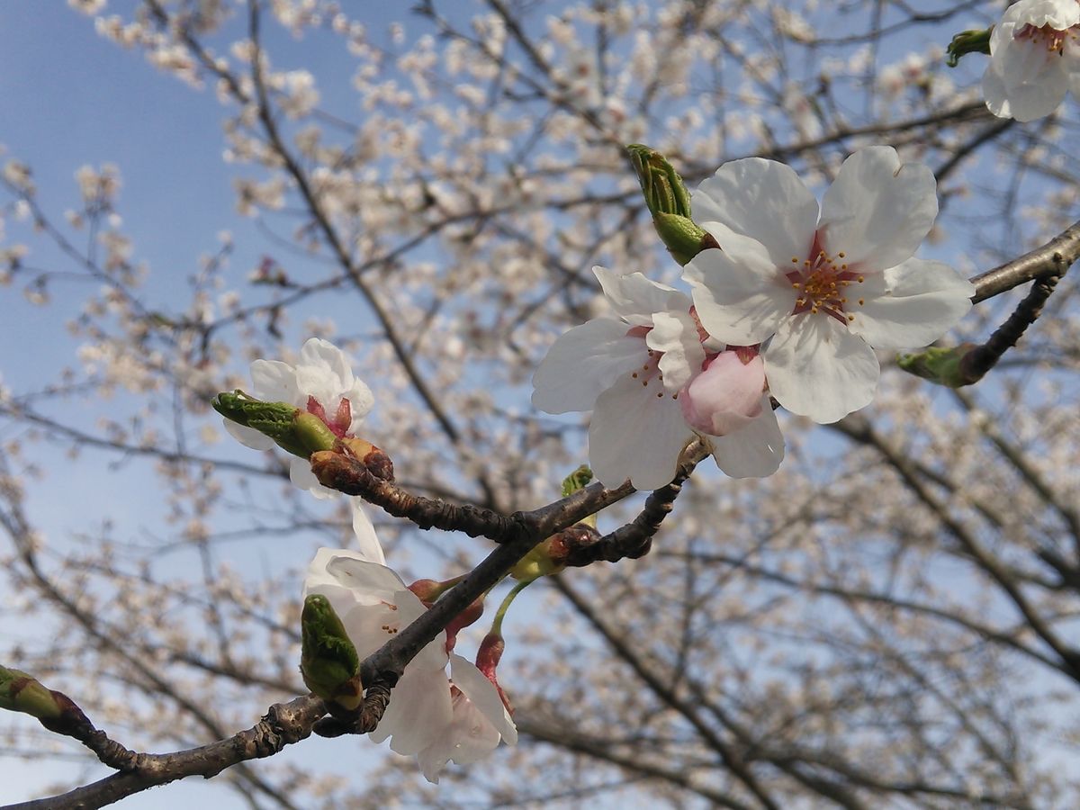 桜並木を遠目にみれば、あわく薄墨色にけぶり、まるでおりてきた雲のよう。