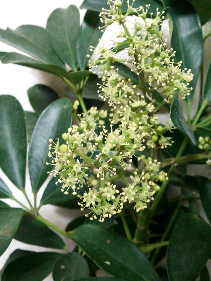 リビングで育ててる観葉植物・カポックの花が咲きました。