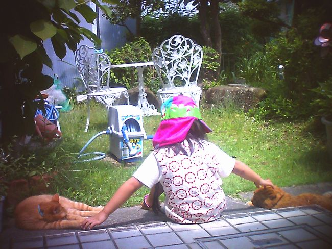猫たちと至福の日向ぼっこをする梅。