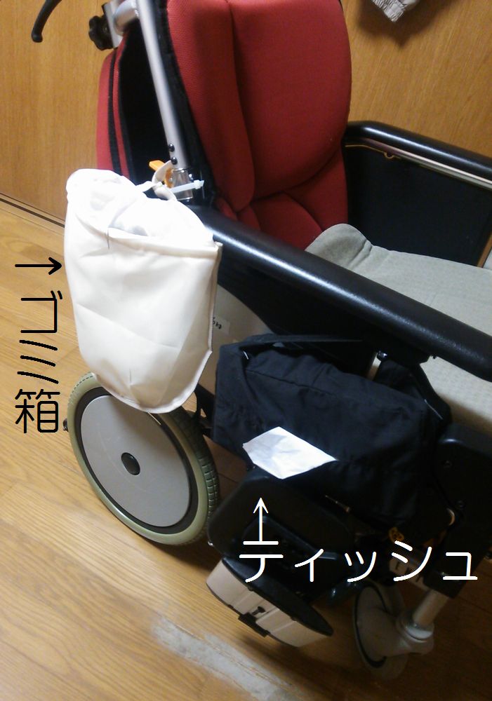 箱ティッシュはちゃんと車椅子につるしてあるのだけど・・・