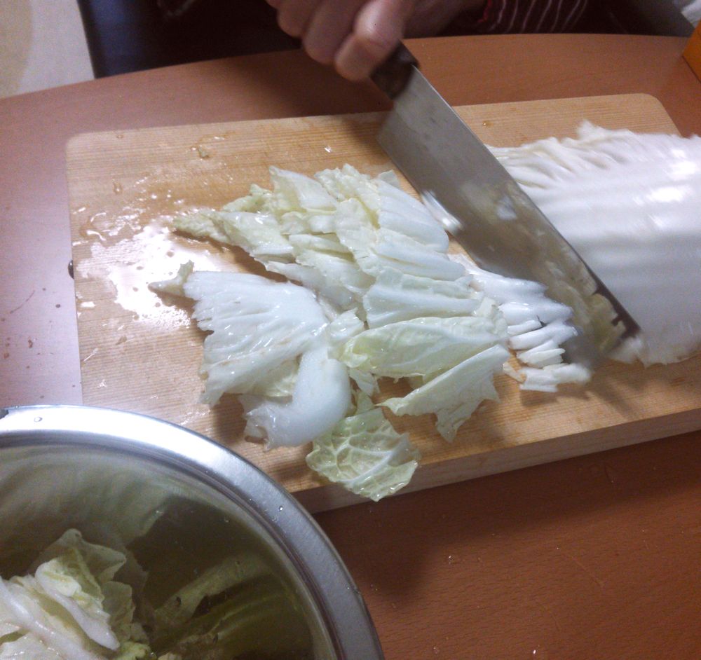 かわりに自分で白菜を切り始めた。