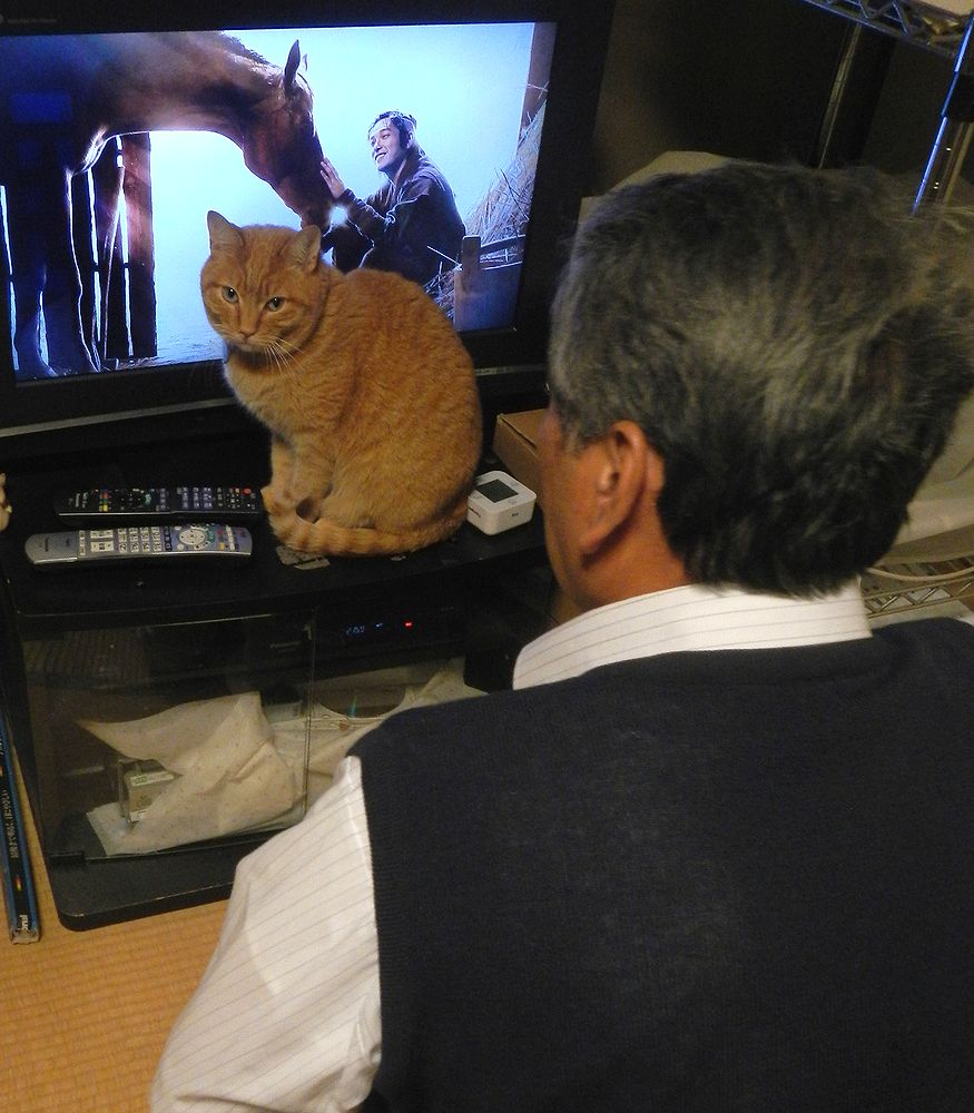 (遊んでー!っていってくる猫を無視してテレビに釘づけになるオヤジ)