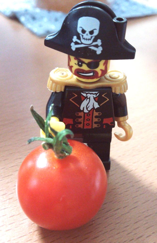 庭のプランターに苗を植えていたミニトマトが、ようやく赤い実をつけた。