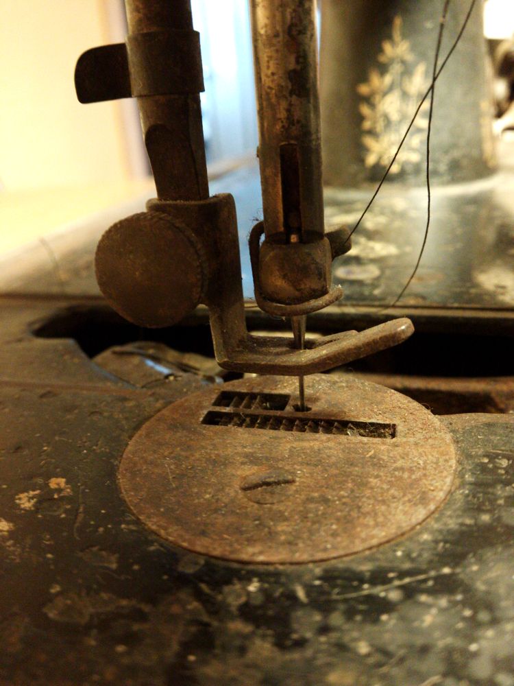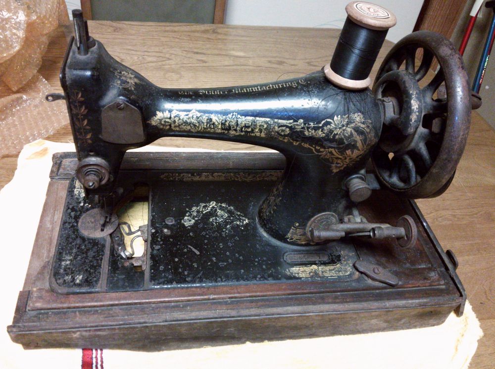 かなり古い手回しミシン。