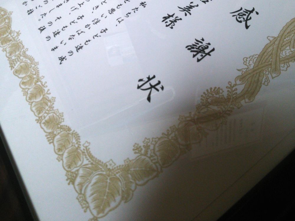 感謝状もらった