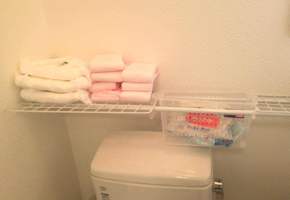 なのにこれだけで、トイレ介助に必要なリハパン、パット、お尻ふきなどなどをすぐ手のとどく所に置くことができて便利です。
