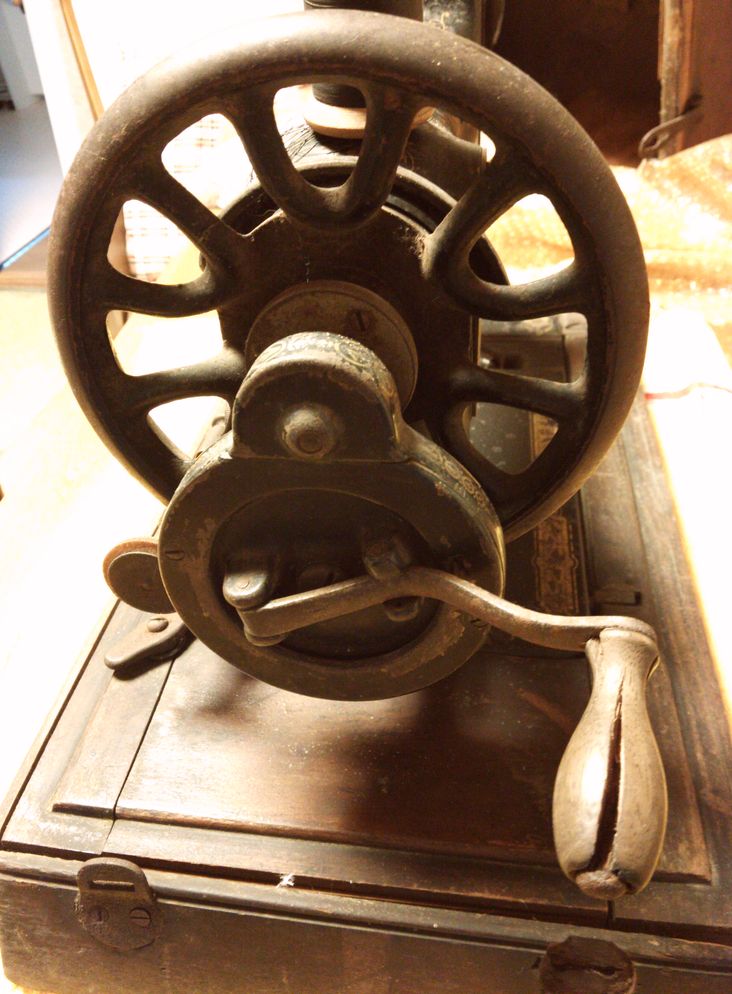 かなり古い手回しミシン。