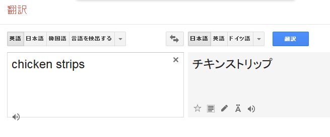 「チキン」って書いてあるので、チキンをストリップさせた鶏の生肉を炒めた!
