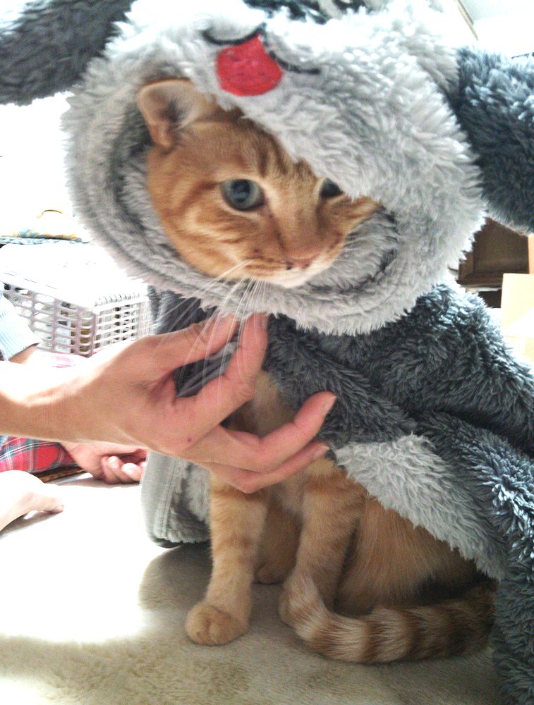 家に帰ると、猫のサンジがコスプレをさせられていた。