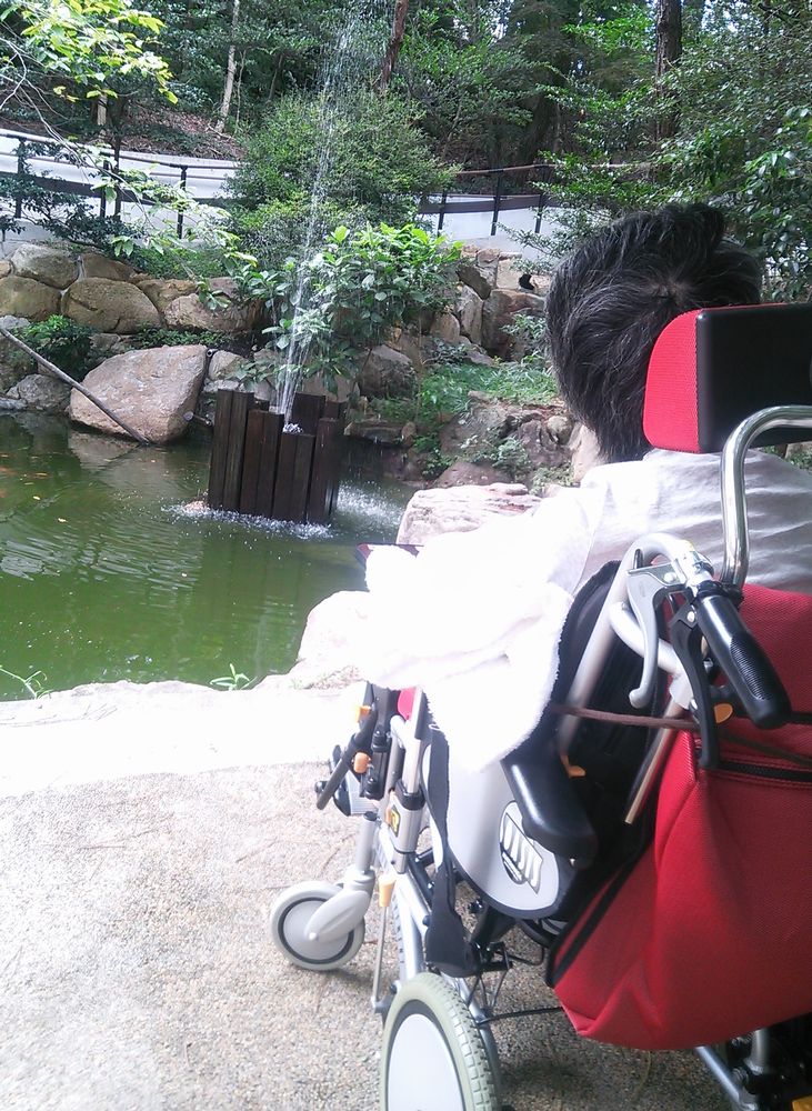 (病院の中庭に噴水ができてた)